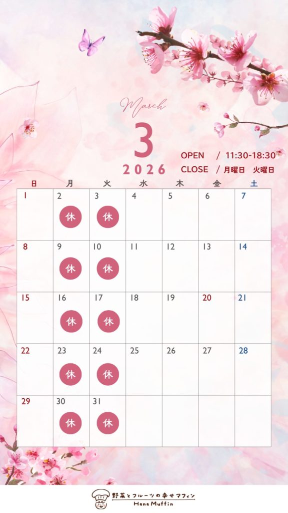 2026年3月の営業予定です。